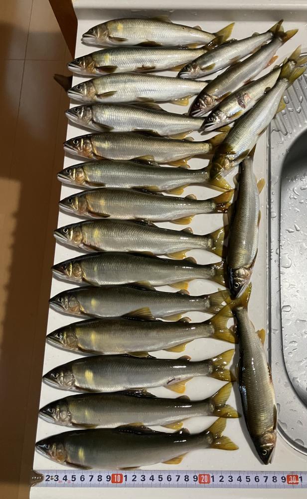 本流も減水が進んで水温も上がっている感じ、掛かり鮎が弱らないよう取り込みに時間をかけないようしないと次のオトリにすぐ使えません。