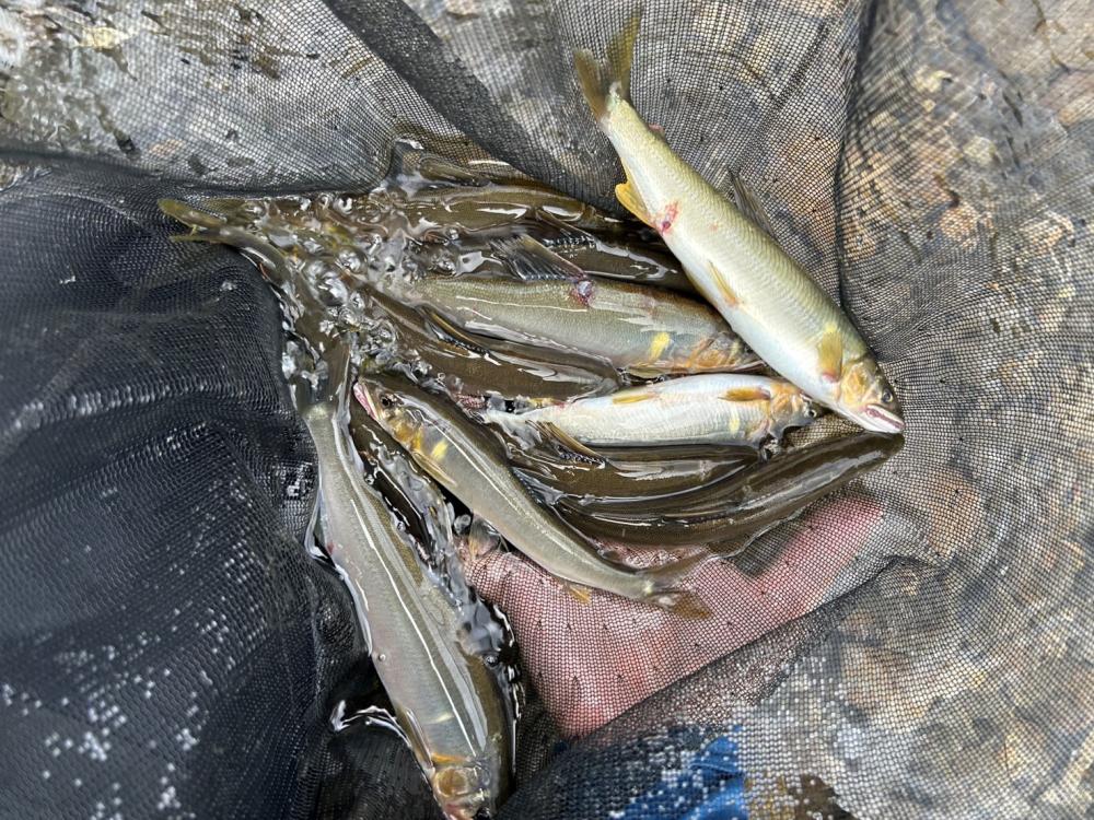 スコールで一時中断も増水で鮎の付き場変わって楽しめた。