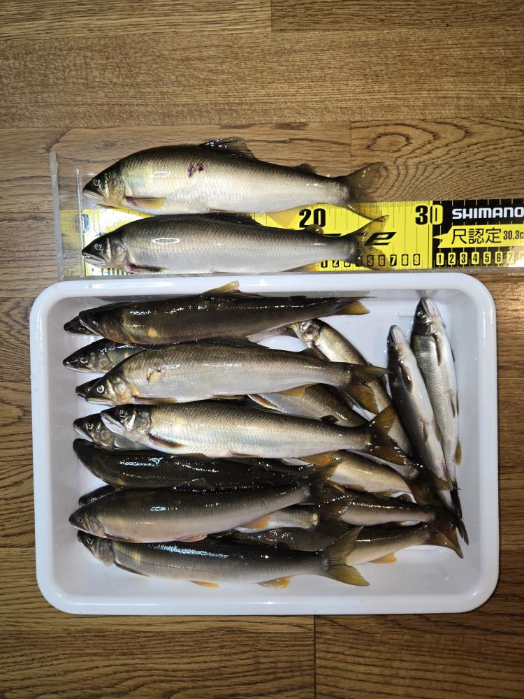 午前中にオトリを確保して午後型狙いの予定もチャラチャラなところでも大きいのがくるので、オトリを繋ぐのに苦労した。次回は25、6をオトリにつかえる道工を準備します。