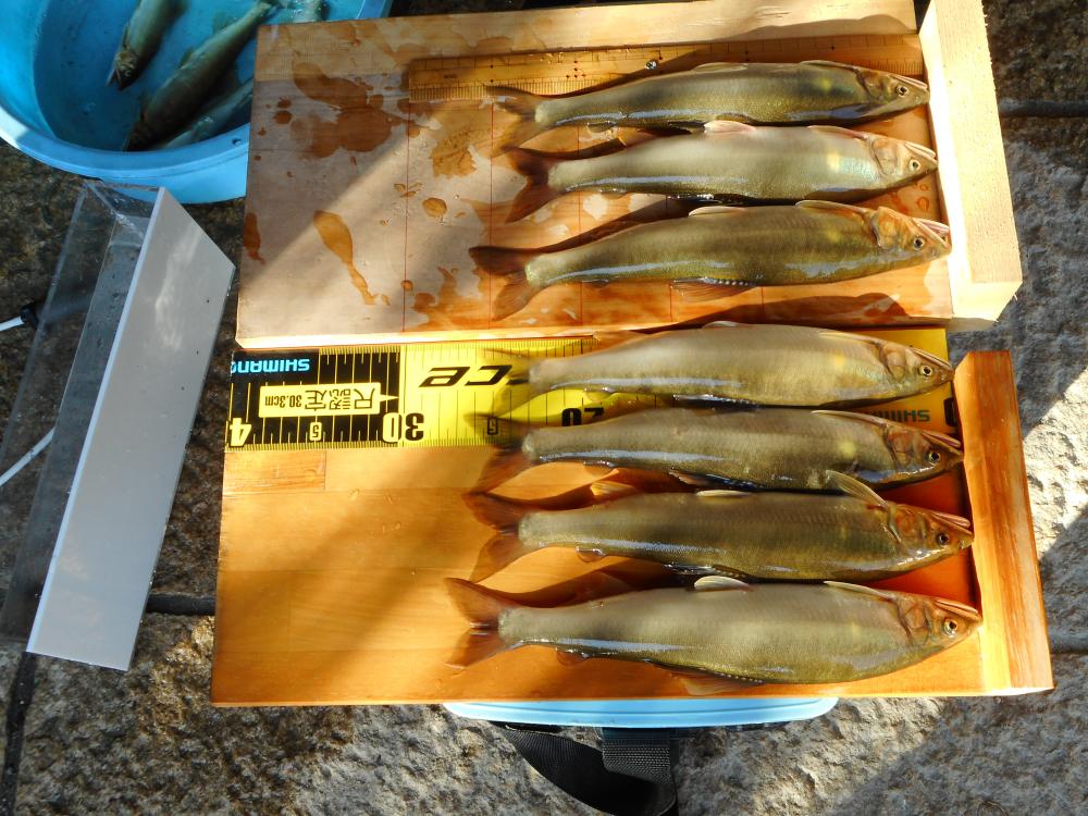 健太君の釣果報告です、大きい鮎が沢山釣れました25㎝~28㎝の鮎が7匹引き回されて楽しかったそうです.有り難うございました。