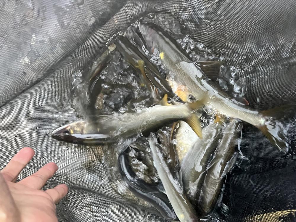 いとこの初めての鮎釣り体験。