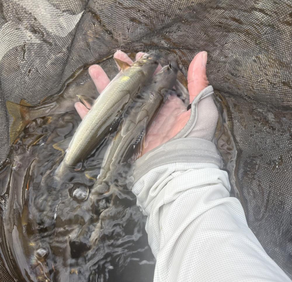 大きすぎてかかっても取り込めません。ハリを折られたりハリス切られたり、おとりが吹っ飛んで天然鮎にすり替わったりしました。