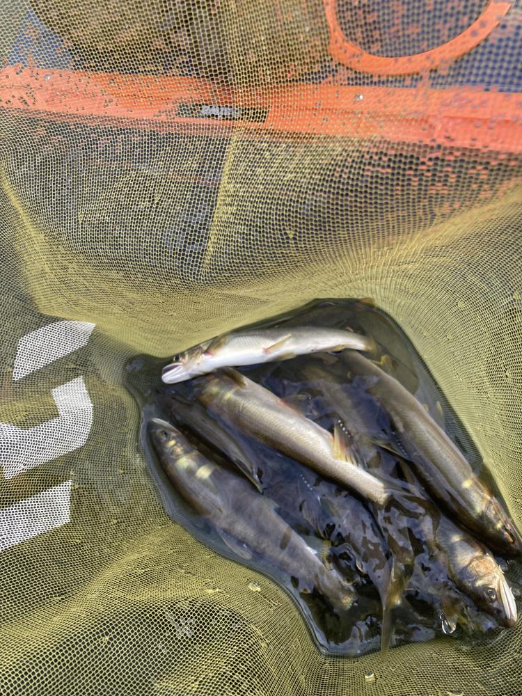 今日は、釣り人も多くあちこちと拾い釣りで昼まで33匹昼から14匹で合計47匹でまずまずでした。写真は、昼からの釣果です。