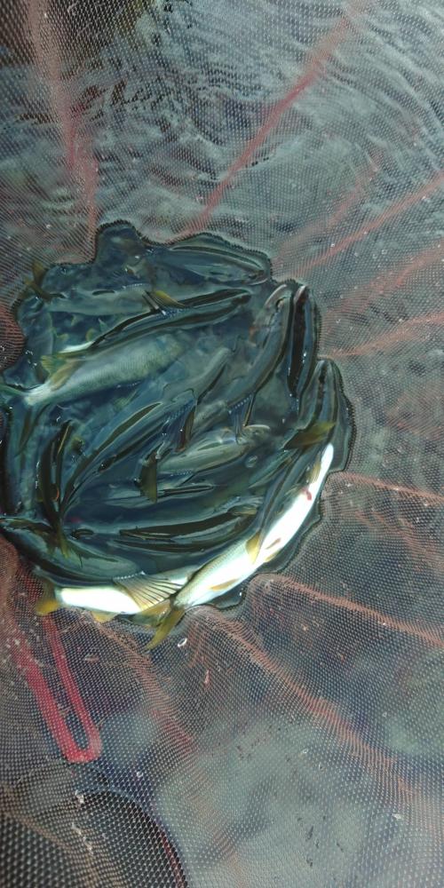 何時もの駐車場下 朝は渋かった駐車場下で5匹 昼頃から掛かりだす 水位が低く的を絞りにくかった 何時ものポイントでは反応薄 広く探って要所々で掛かる