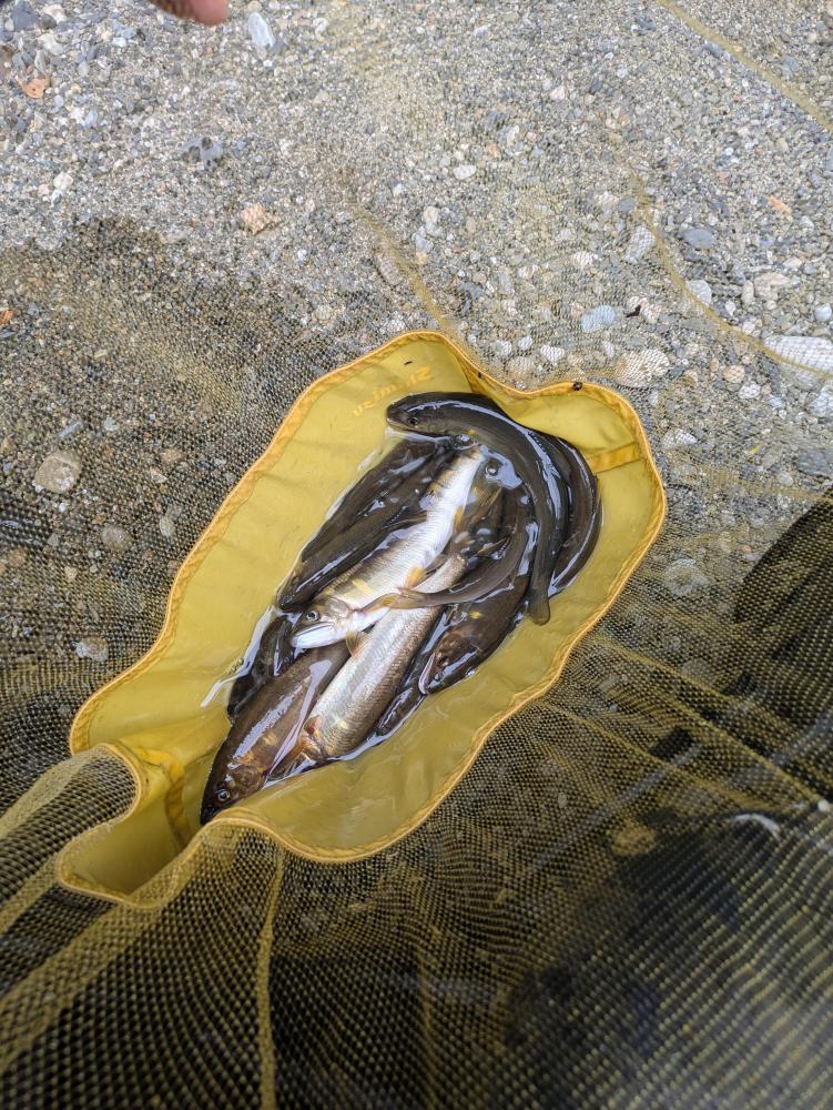 何度も場所を往復し何とか11匹。型も小さくなり、背びれの長い鮎が少なくなってきています。