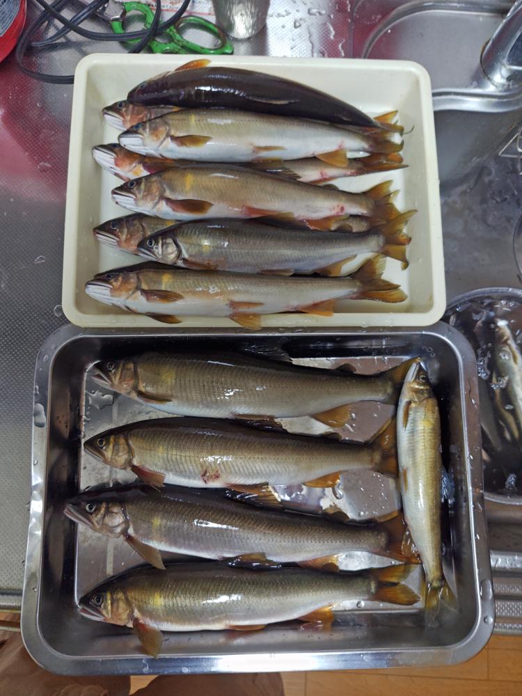 もう少しの所で天井糸からプッツンあれは痛かった。何回も使ったらだめですね。写真は2人分の釣果