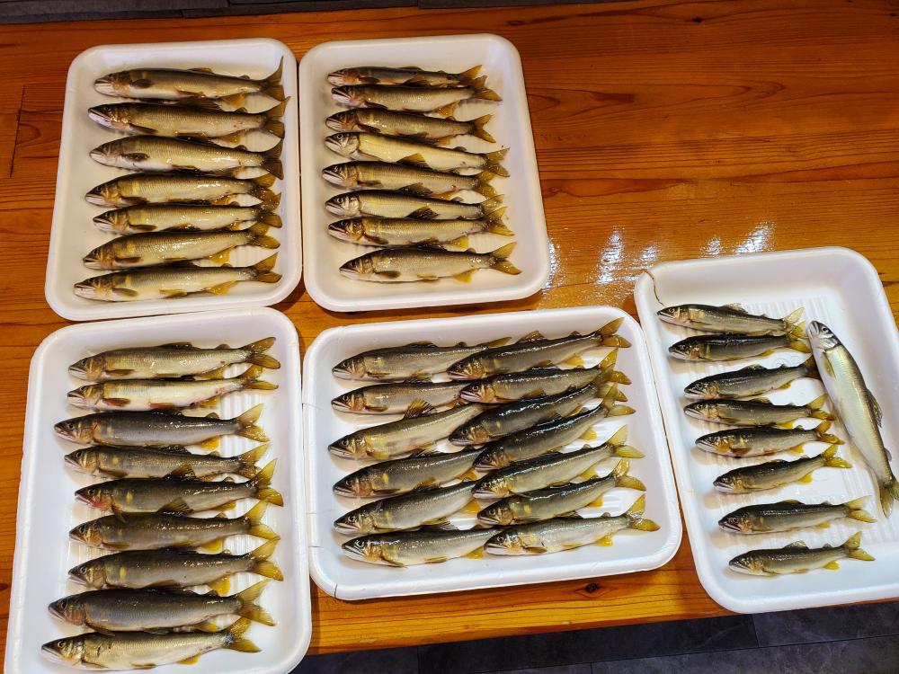まっ黄っ黄色の鮎が遊んでくれました。数釣りは面白いですわ!