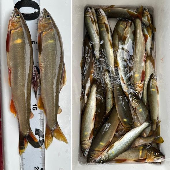 流心よりも瀬肩でよく掛かりました。半分は若鮎、子持ち鮎も楽しみです。絶景の日置川で鮎釣り最高です。