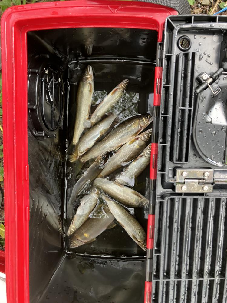 昨日は大入りだったと人気のポイントに朝一入川しましたが釣れても20㌢未満。20㌢越えは2匹だけ