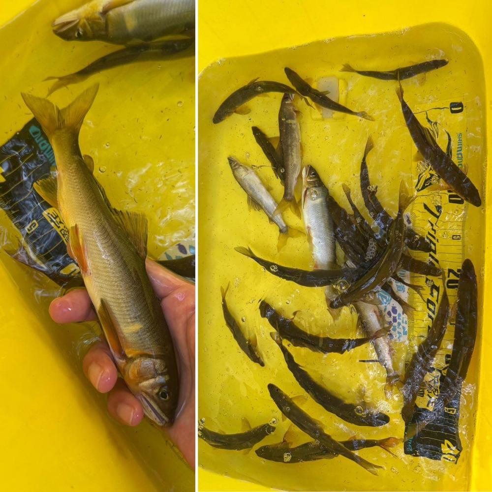 皮の柔らかい鮎が多く、ちび鮎も追い星くっきり綺麗な鮎です。まだまだ楽しめます。