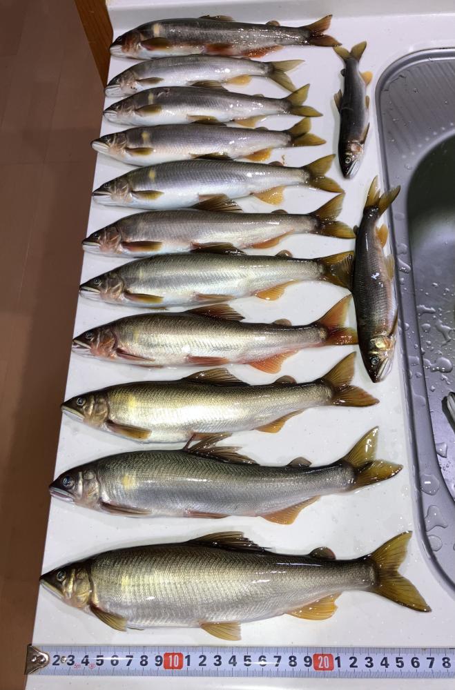 小さいメスは少しサビが出て来てる、ダムで生まれて遡上した個体なのかな?