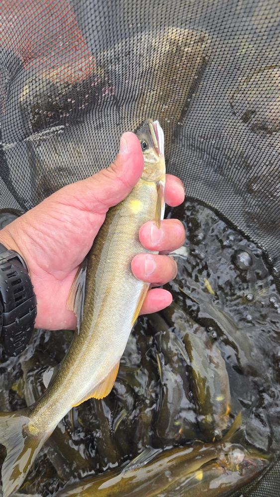 午前も午後も最初の1尾は掛かり所が悪くてオトリに使えず循環悪い。