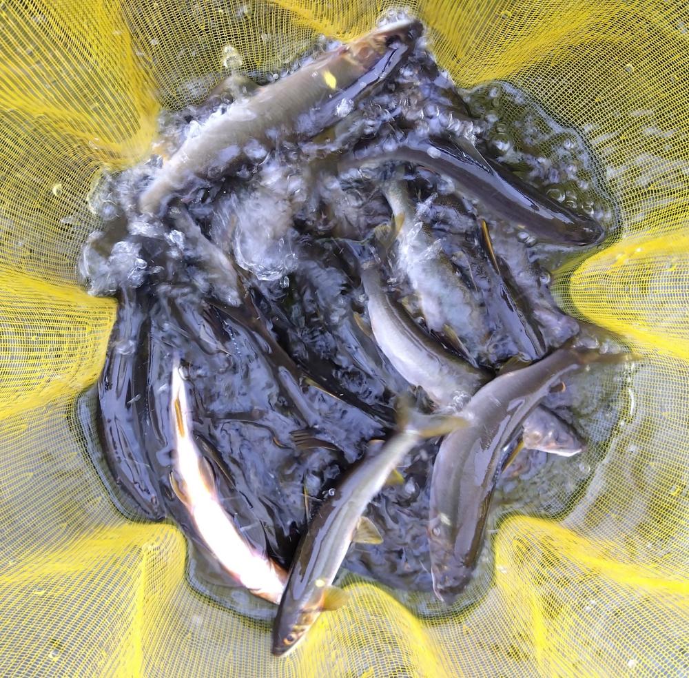 数年ぶりのポイントです。岩が滑って歩きにくいのですが減水で川の中をあちこち移動できました。竿9m、水中糸メタル0.07号、鈎6.5号4本錨