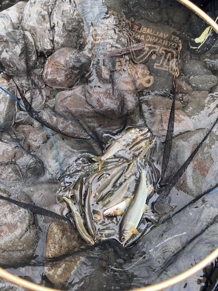 増水で流れが強かった。背で釣れて良く引いたので楽しめました。ライントラブルが無ければもう少し釣果は伸びたかな