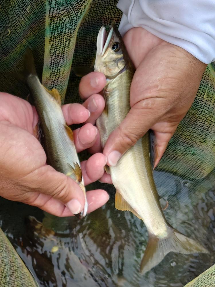 ウォーミングアップは本流・下流域での数釣りで、初めて入った岡本橋下流。前半1時間半は上手くいき、15〜16㌢までを20匹近く。後半1時間半は敢えて狙い所を変えたところ、見事に撃沈でした。