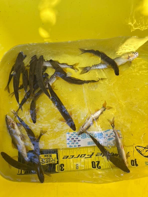 始め小さめでしたが昼前頃から中型がよく追うようになりました。竿先折ってしまい早上がり、ドンコは30匹くらい釣れましたが掛かった鮎は元気でした。