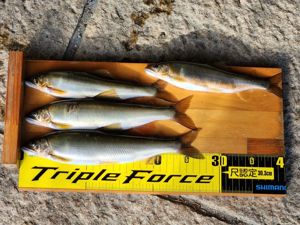 午前中、先々週・先週と同じポイントに入るも、水温が下がったのか、全く掛からず。午後、ポイント変えて、何とか4匹キープ。