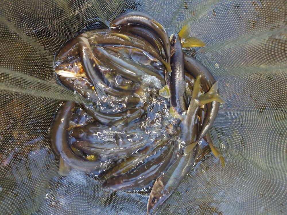 最後は下流でリミプロ色のキーホルダーみたいな鮎が釣れて観念しました。
