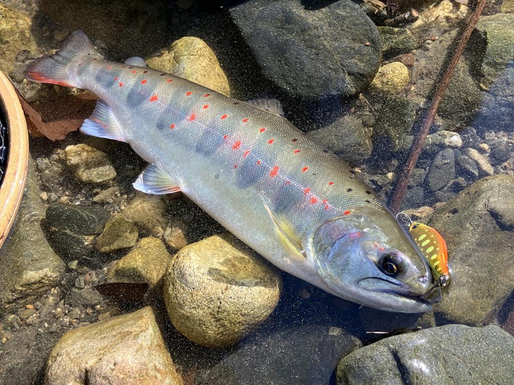 14時前に宿に入川。ルアーでアマゴ