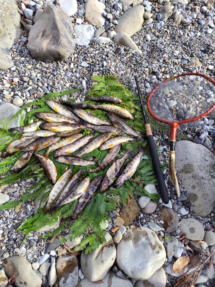 テンカラ釣り 思ったより増水でオマケに眼鏡を忘れて小さな毛鉤が見づらく苦戦しました。