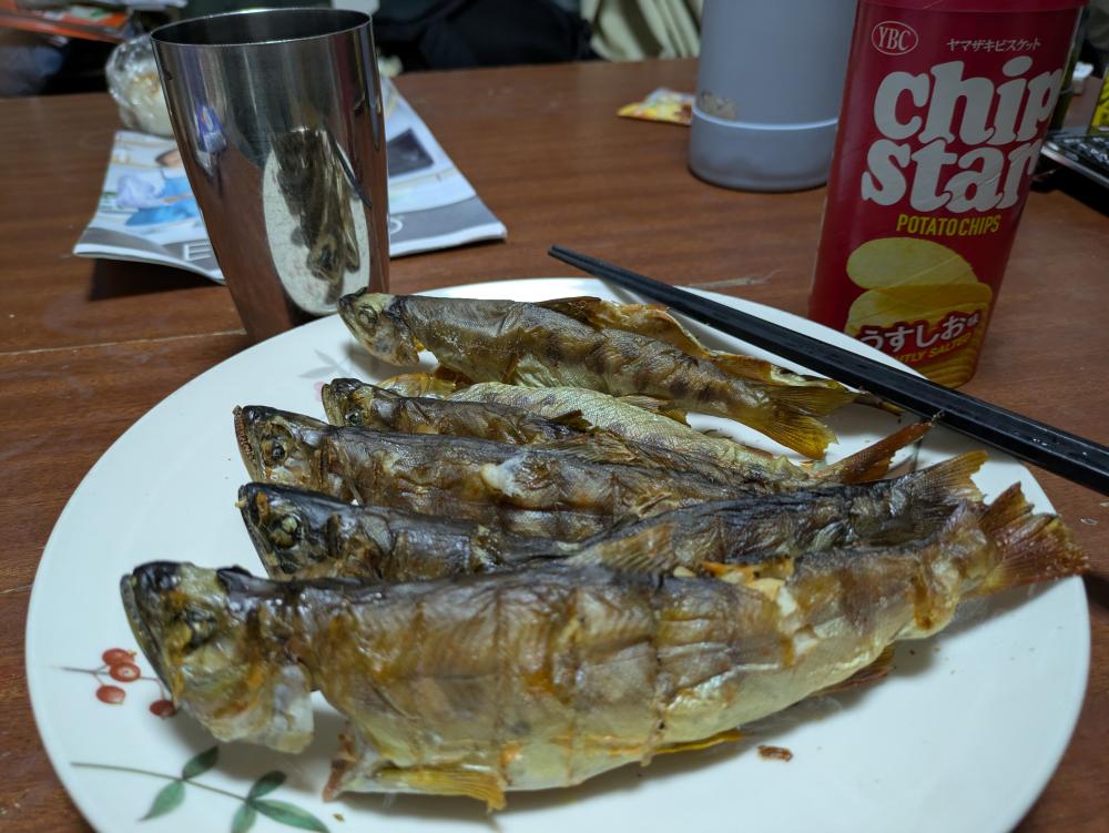 今日も晩酌のさかなはキープできました。3匹はチッチャかったのでリリース。