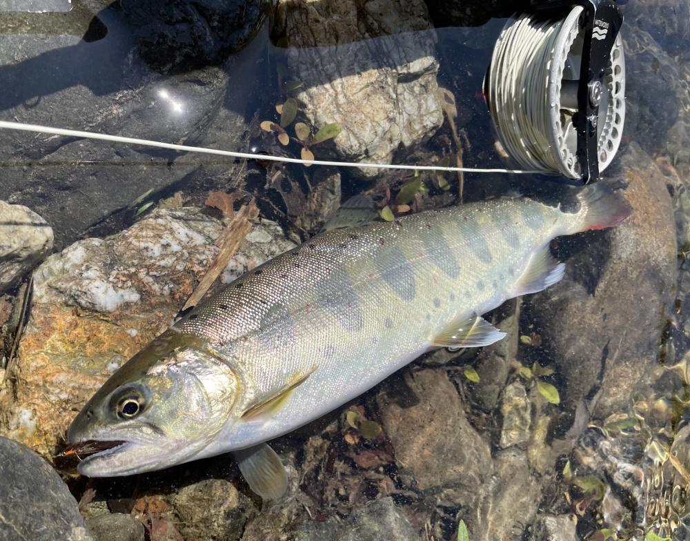 ライズは多いが、ドライフライは完全無視。ビーズヘッドやマラブー系も完璧スルー。放流直後のはずなのに、どこで教育されたのか❓水面直下のミッジとウエットフライで何とかツヌケ❗️アマゴのサイズは大型になって、良く引きます‼️