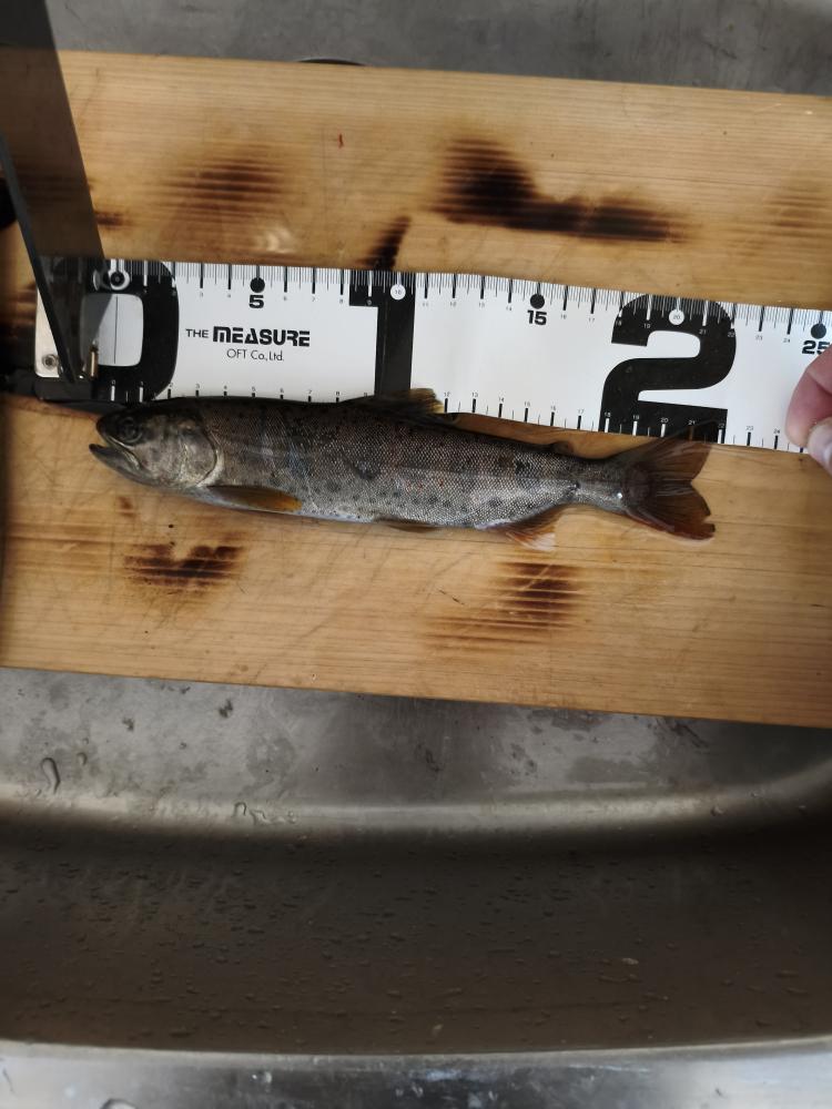 鮎の鑑札を買いに行って、鮎を観察して夕方せっかくだからと一箇所だけ入ると2投目で良型のアマゴが来てくれました。釣りをした時間がまさかの10分で撤退でした。