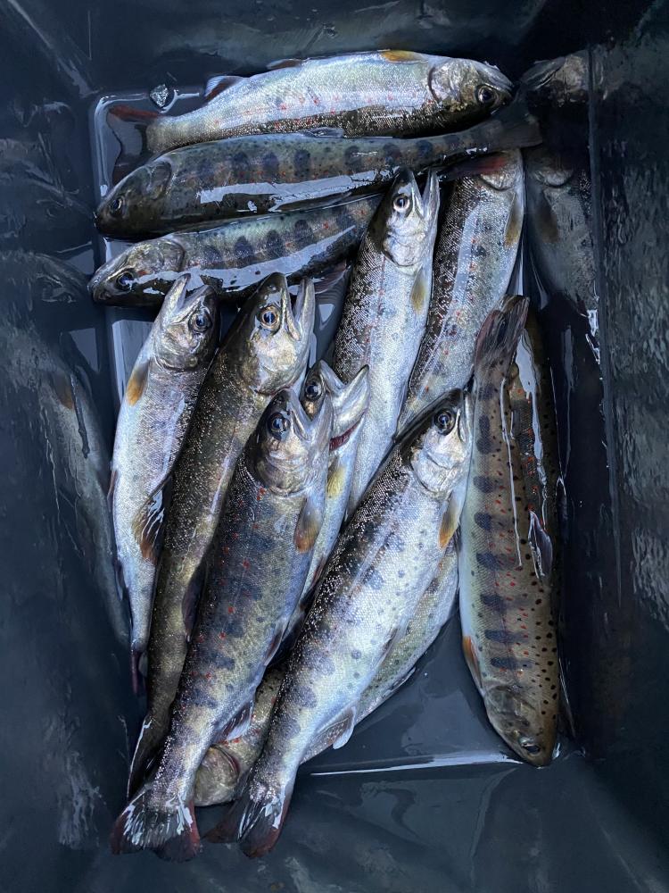竿5.0 糸0.3 針3 餌いくら、川虫