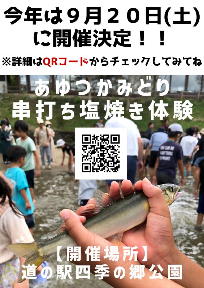 明日開催! 和歌山市明王寺の道の駅「四季の郷公園」でのアユつかみ取り 参加申し込みまだ間に合います!! のこりわずかです。