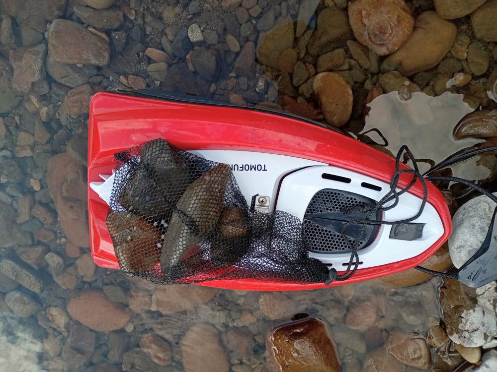 各社の曳舟アンカーを使いましたが、普通に石裏に置くだけでは全く止まらない。