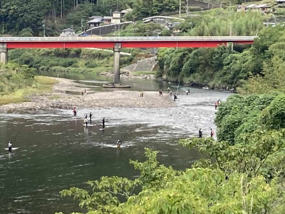 今日は朝から人気の三十木が無人!と思いきや、ぞくぞくと団体釣り師で埋め尽くされ圧倒されましたが、すぐに友釣り塾だとわかりました!