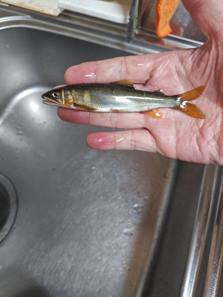 有田川のダム上の清水で大物狙い。1回だけあたりがあっただけ。昼であきらめて小さくてもいいから鮎を見たいと白石の瀬に移動、今シーズン最小が釣れました。先週は自己最大を釣ったのに。