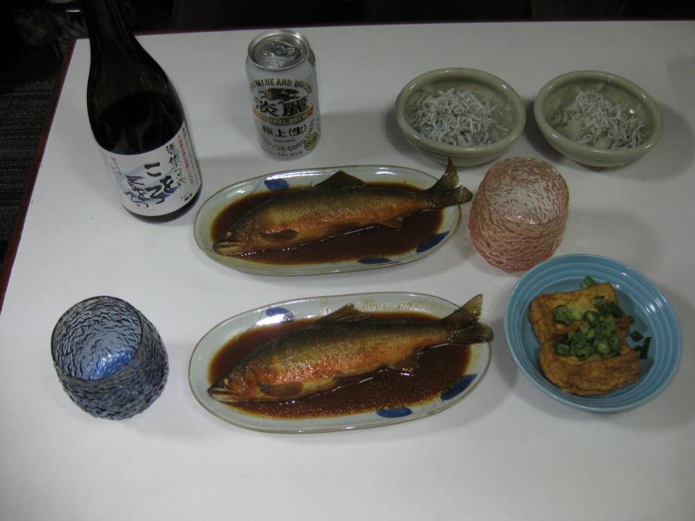 今年は500匹の鮎が釣れました、ご近所等々にお裾分けして最後に残してた2匹を味噌煮にして食べました、大きくて26cmあったので奥さんと1匹ずつ・・・美味しかった。