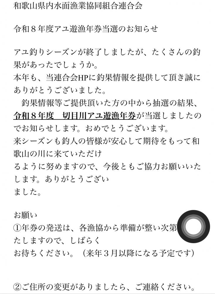 来シーズンは切目川と言う河川の年券が当たったので、訪れてみたいと思います。