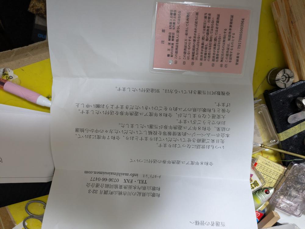無事紀ノ川の鑑札が届きました。ありがとうございます。買ったまま御蔵入りになっている急瀬の竿が使えそうです。